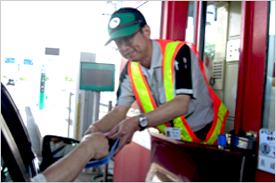 ③ At the Exit tollgate, hand your toll pass ticket to the attendant and pay the toll with cash or a credit card. Cash payment must be in Japanese yen.